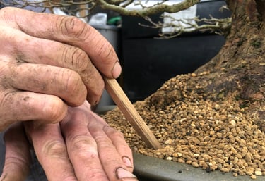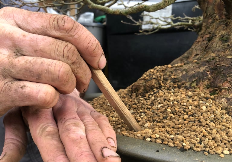We provide all regular maintenance such as repotting, pruning and styling. This can be done on a regular basis or ad hoc. Generally this is done as a garden visit but trees can be brought to us to be worked upon.